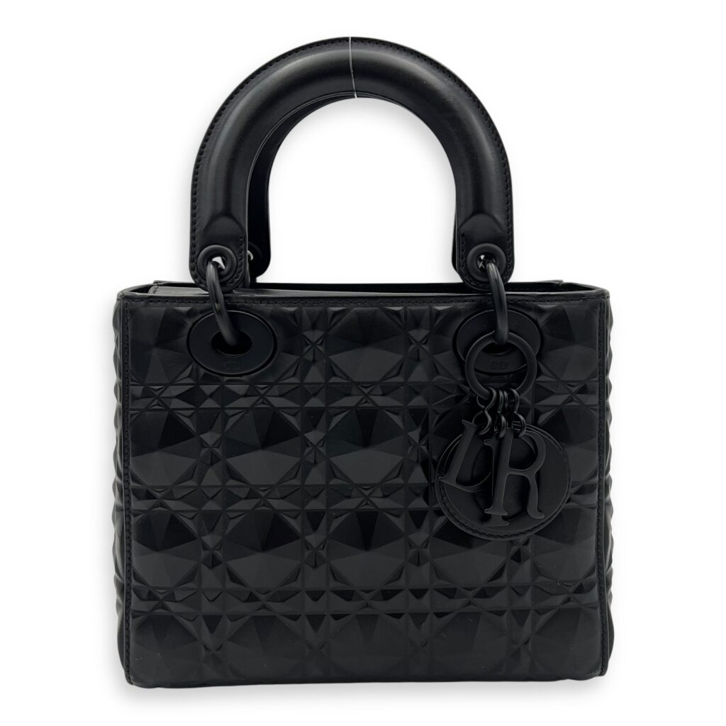 Lady Dior Small Black Top Handle Bag in Calfskin, Ultramatte hardware